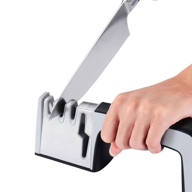This is the world's best knife sharpener. This kitchen iq sharpener is indispensable in every kitchen ! The any sharp knife the ga knife sharpener electric is a multipurpose device that is designed to sharpen all kinds of household tools including knives, scissors. Has four knife sharpening settings along with the scissor slot for a total of five. The coarse slot includes preset diamond rods set at a 35 degrees combined angles to quickly sharpen european / american.